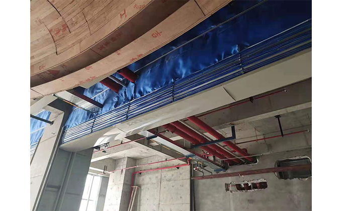 擋煙垂簾垂壁根據(jù)設計要求和現(xiàn)場實際情況采取如下施工順序:首先,搭設腳手架一放線一打眼--上脹栓一焊骨架。第二,吊件一安裝骨架…